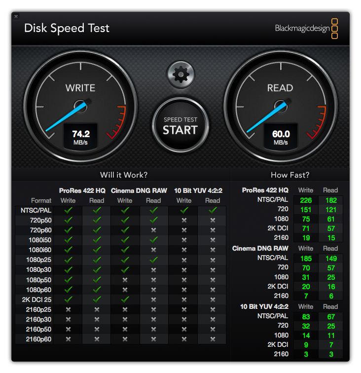 I have mentioned in the article that there is a significant speed difference between the HSF+ and Fat32 Partition, from the screenshot below, we have tested the Fat32 Partition and the speed has just dropped right down to 74.2MB/s write and an astonishing 60.0MB/s read speed.